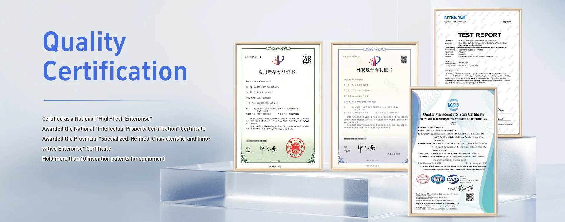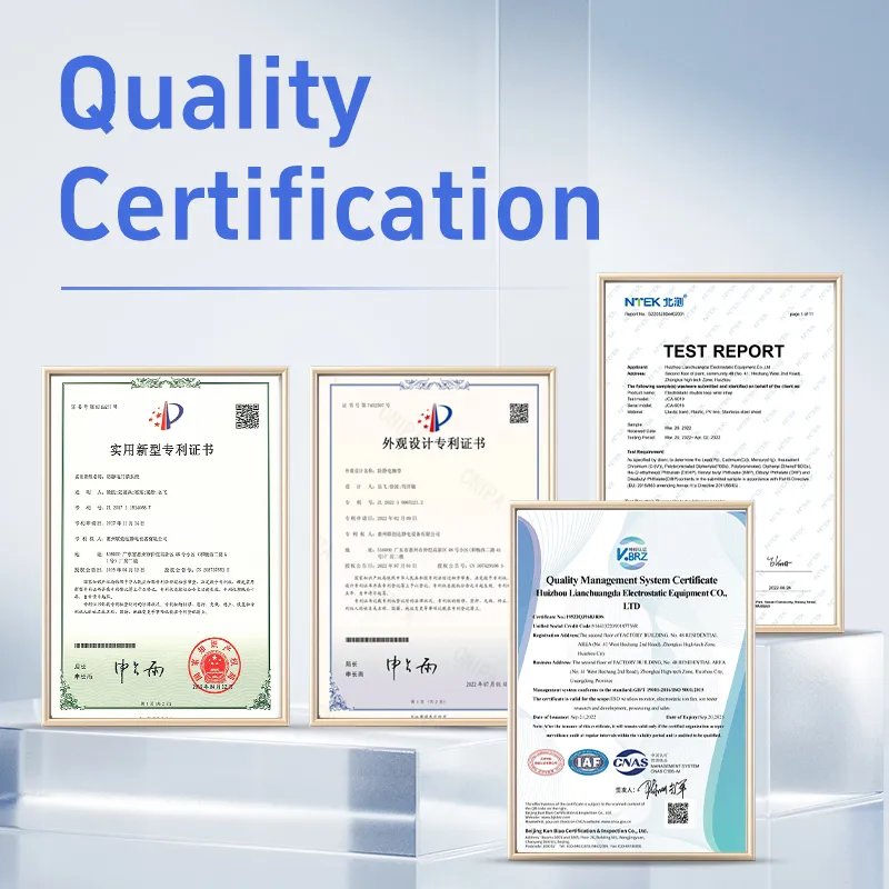 Huizhou Lianchuangda Electrostatic Equipment Co., Ltd. is a globally leading industrial Internet of Things + technology company integrating the research and development of electrostatic purification and equipment manufacturing. Committed to providing overall solutions for ESD static electricity prevention and control, serving the national strategy of modern Industry 4.0, achieving the technical requirements of Industry 4.0, meeting the needs of automated lean production, air purification equipment and purification projects, intelligent equipment, and building intelligent factories and digital management workshops in key areas. We are fully independent in the research and development, production and sales of electrostatic protection tools. We have passed the ISO9001 quality management system certification and the ROHS certification for electrostatic consumable wristbands, and hold a number of related patents.